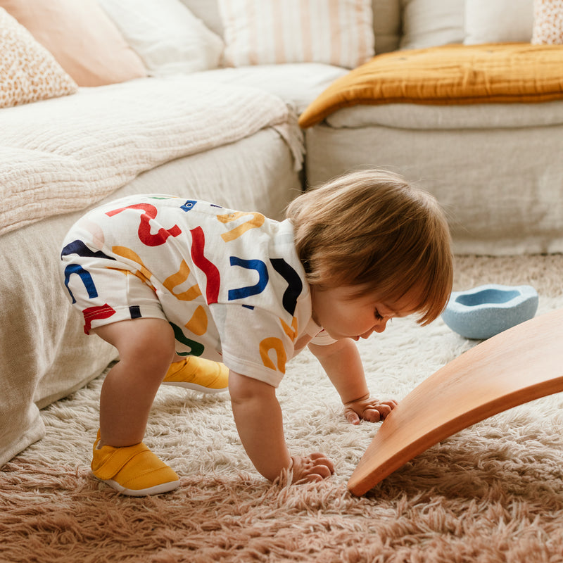 Dès que possible, laisse-le pieds nus, car c'est l'idéal pour son développement.