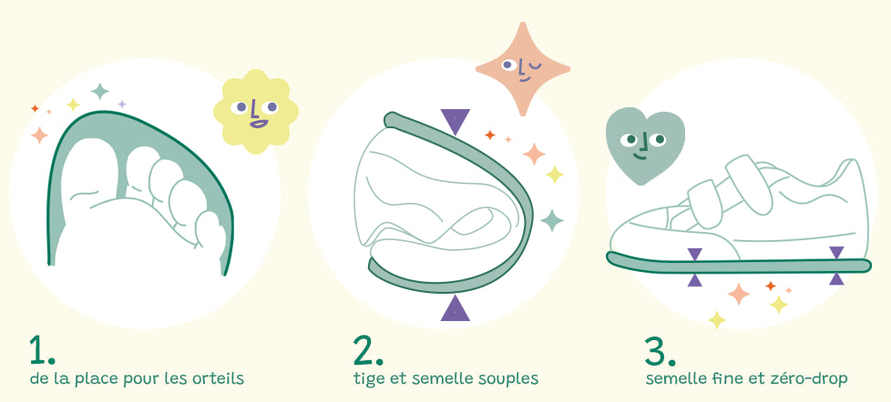 Pourtant, trop de chaussures bébés et enfants sont rigides, trop serrées, avec une semelle épaisse qui coupe les sensations naturelles.