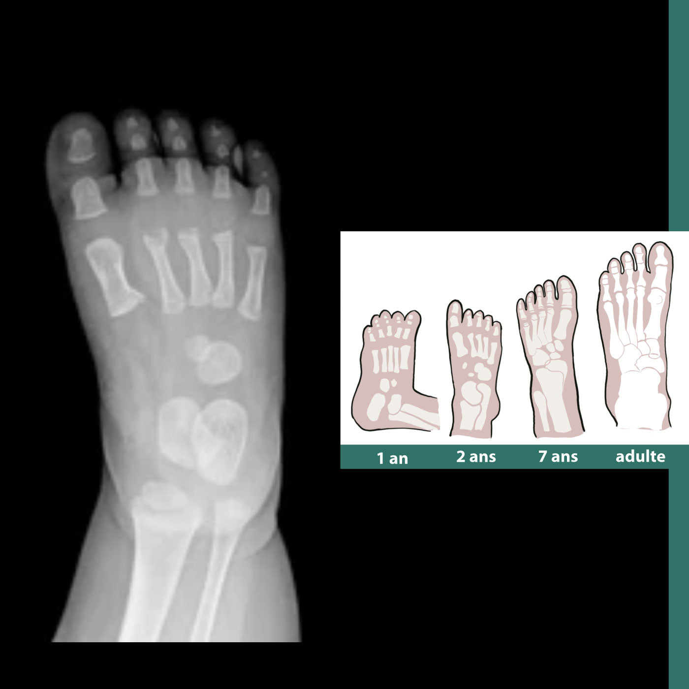 À la naissance, le pied du bébé est constitué de structures cartilagineuses qui, en grandissant, se transformeront progressivement en 26 os distincts.