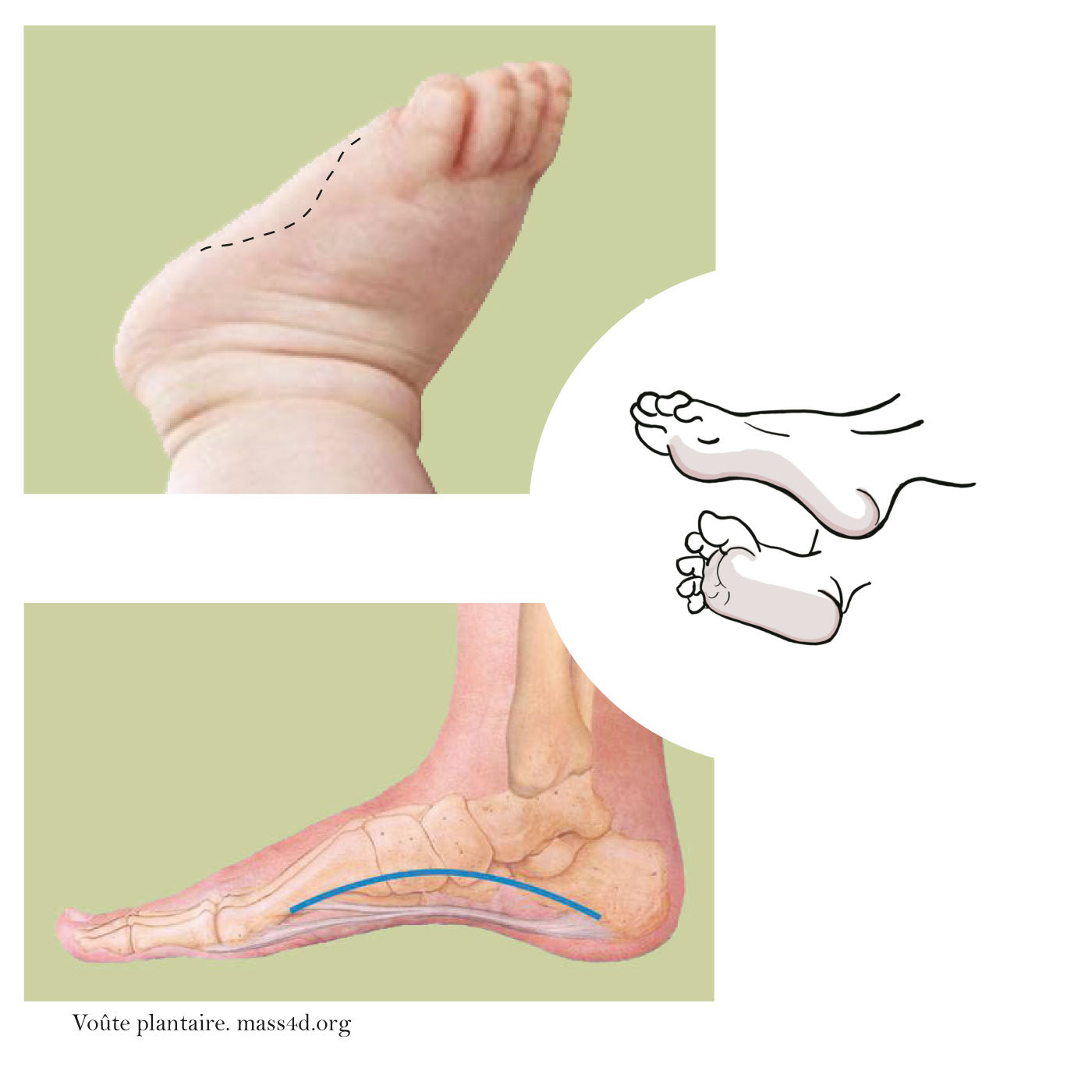 À la naissance, un coussinet de graisse protège cette zone : c’est lui qui donne au pied du bébé son aspect plat. Avec le temps et les premiers pas, les muscles se renforcent, les os s’ajustent, et la voûte se creuse naturellement.
