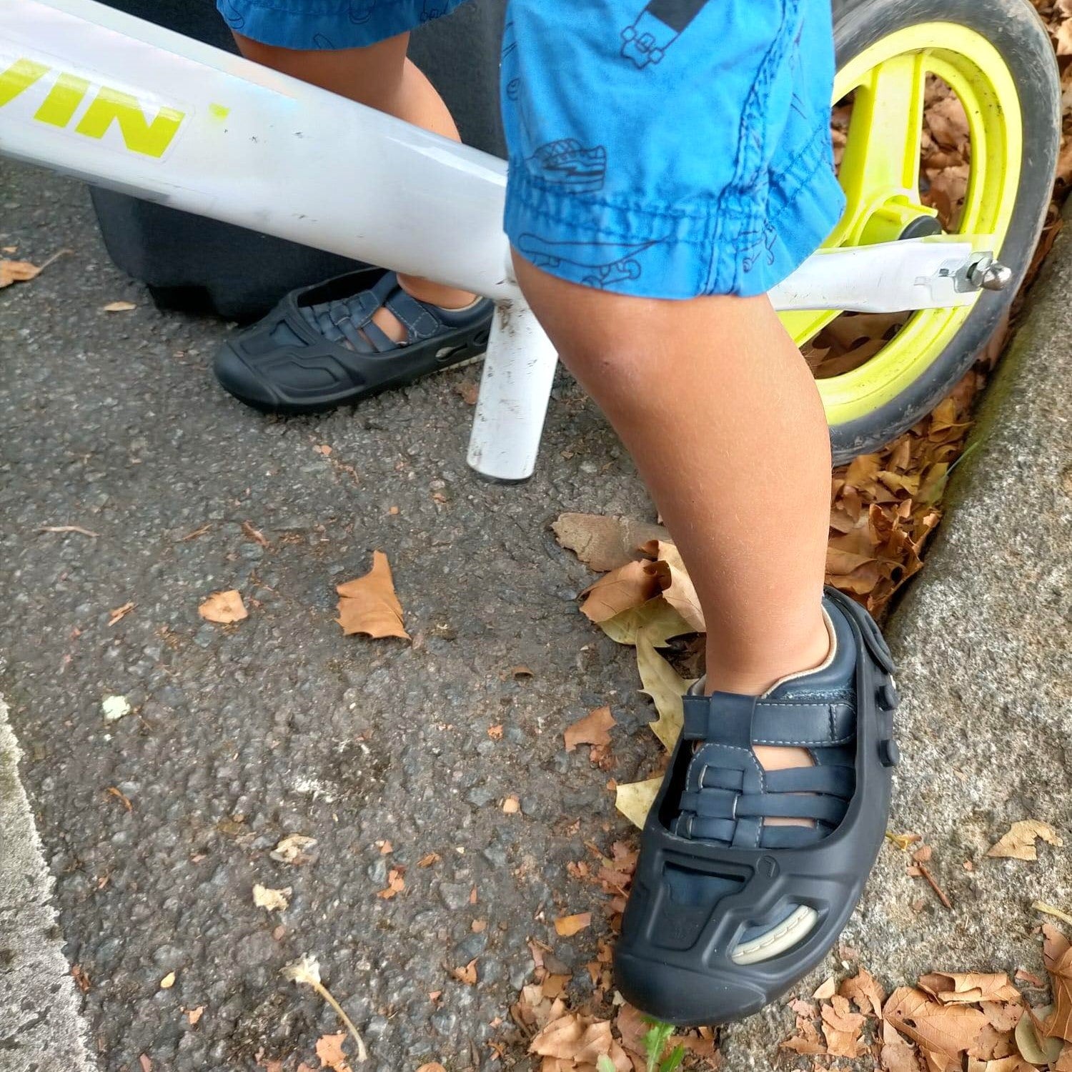 En draisienne ou à vélo, on oublie les chaussures non renforcées à l’avant !