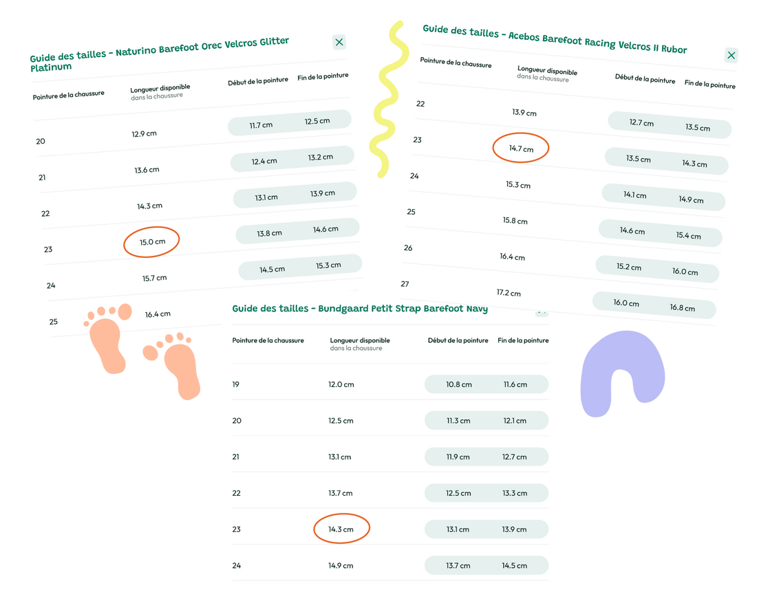 En comparant la longueur du pied avec la longueur intérieure mesurée par Petits Pas de Géant, vous évitez totalement ce type de surprise.