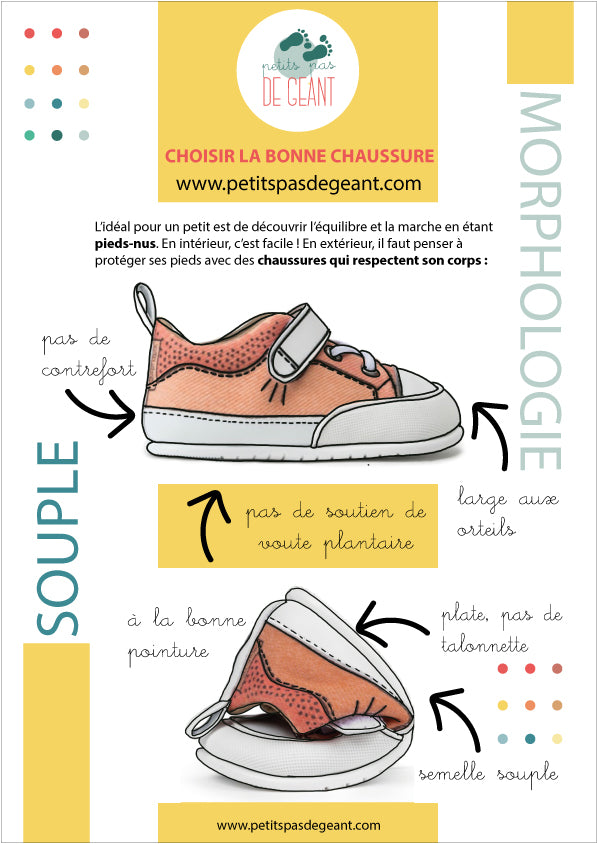 De là, l’expression est restée et nous l’avons utilisée pour définir la bonne chaussure pour enfant : celle qui respecte au mieux les petits pieds, aide au bon développement de la motricité, laisse les pieds libres de bouger et de grandir naturellement.