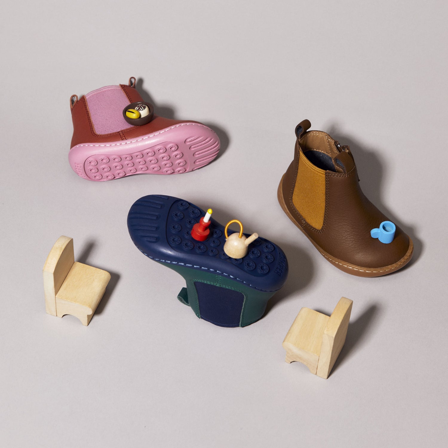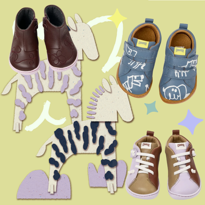 Trabajamos con la marca Camper desde 2020. Entre todos los modelos de su colección infantil sólo hemos seleccionado los más respetuosos. Se trata de una pequeña selección comparada con la gran oferta de Camper, pero es una gran propuesta de zapatos originales y únicos, diseñados en Europa con gran saber hacer.
