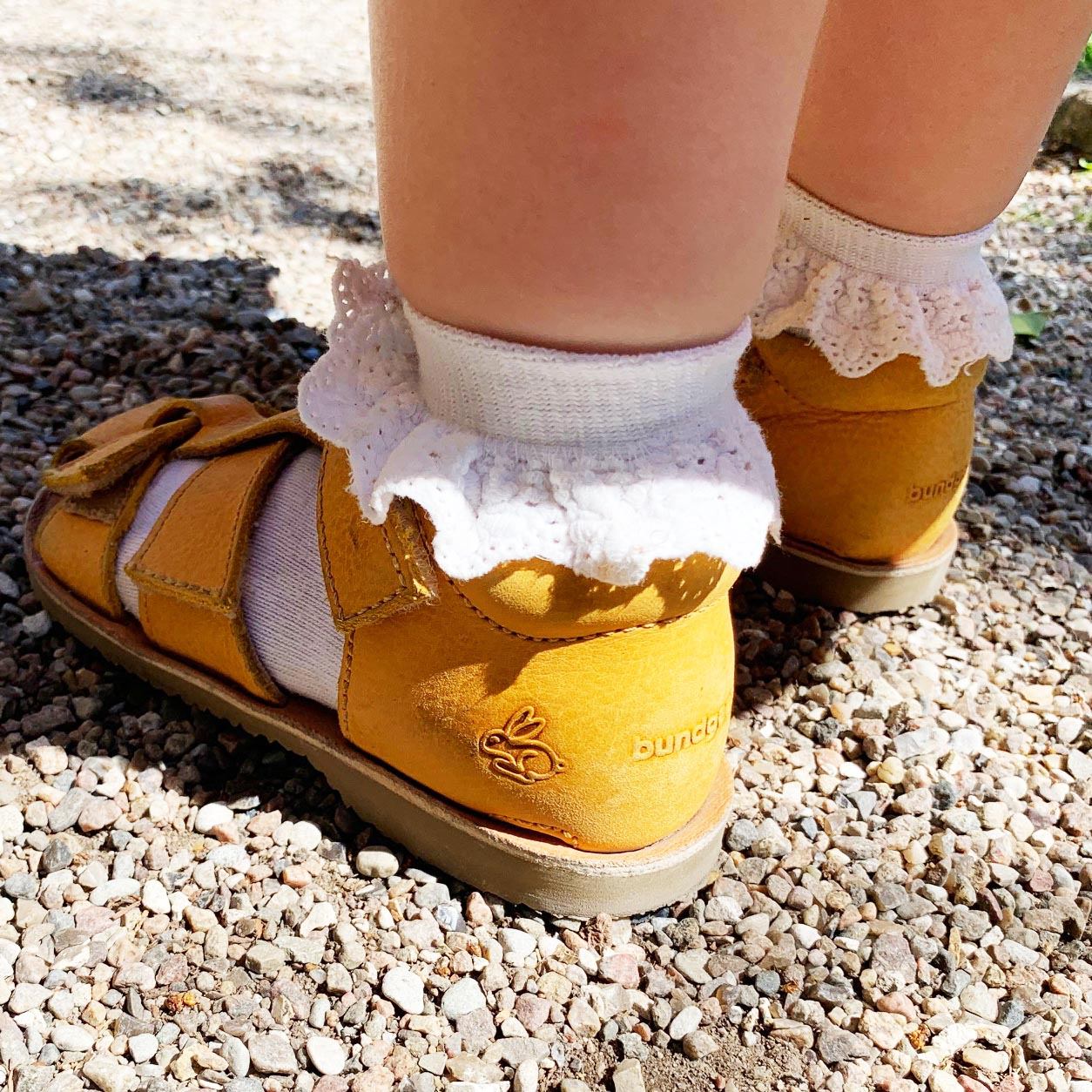 De todos modos, los niños suelen querer ponerse calcetines al estrenar zapatos. ¡La sensación del pie descalzo en el zapato siempre les confunde un poco al principio!